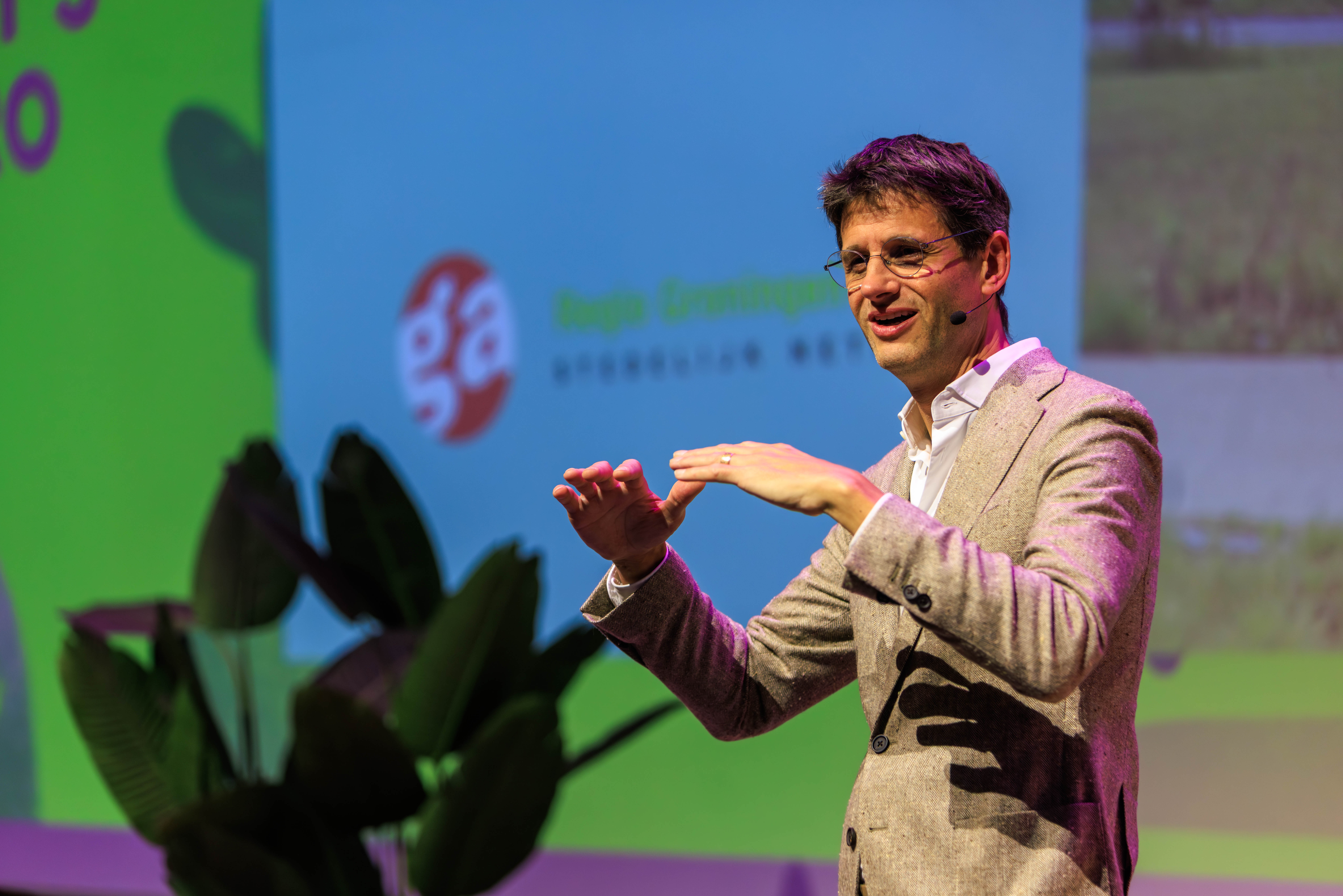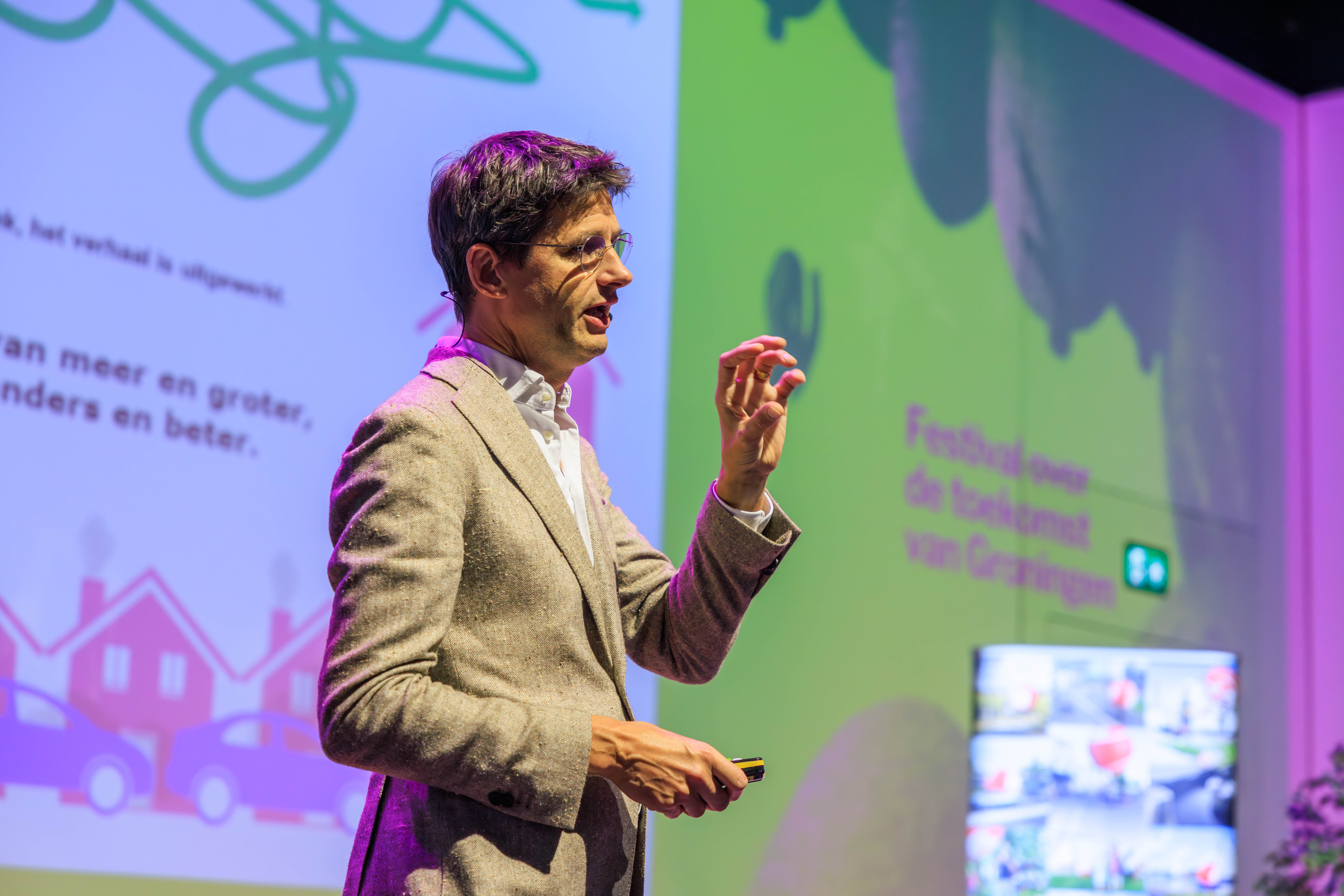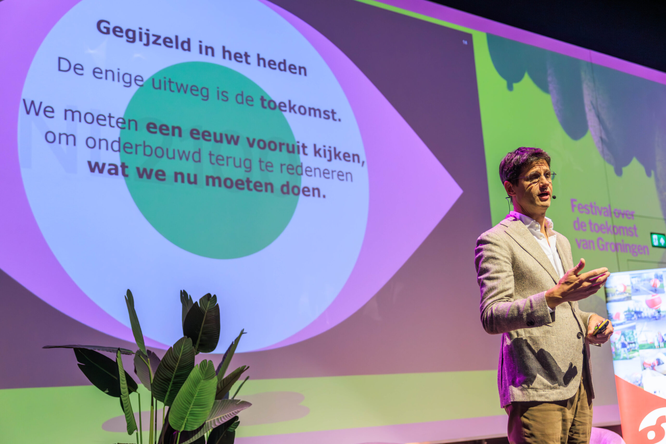 We leven volgens Veldhuis niet zomaar in een tijd van verandering, maar in een verandering van tijdperk. Oude oplossingen – zoals teruggrijpen naar het verleden of verder opschalen – werken niet meer. We moeten leren om vooruit te kijken – een eeuw vooruit – en dan terug redeneren wat we nú wel en niet moeten doen.”