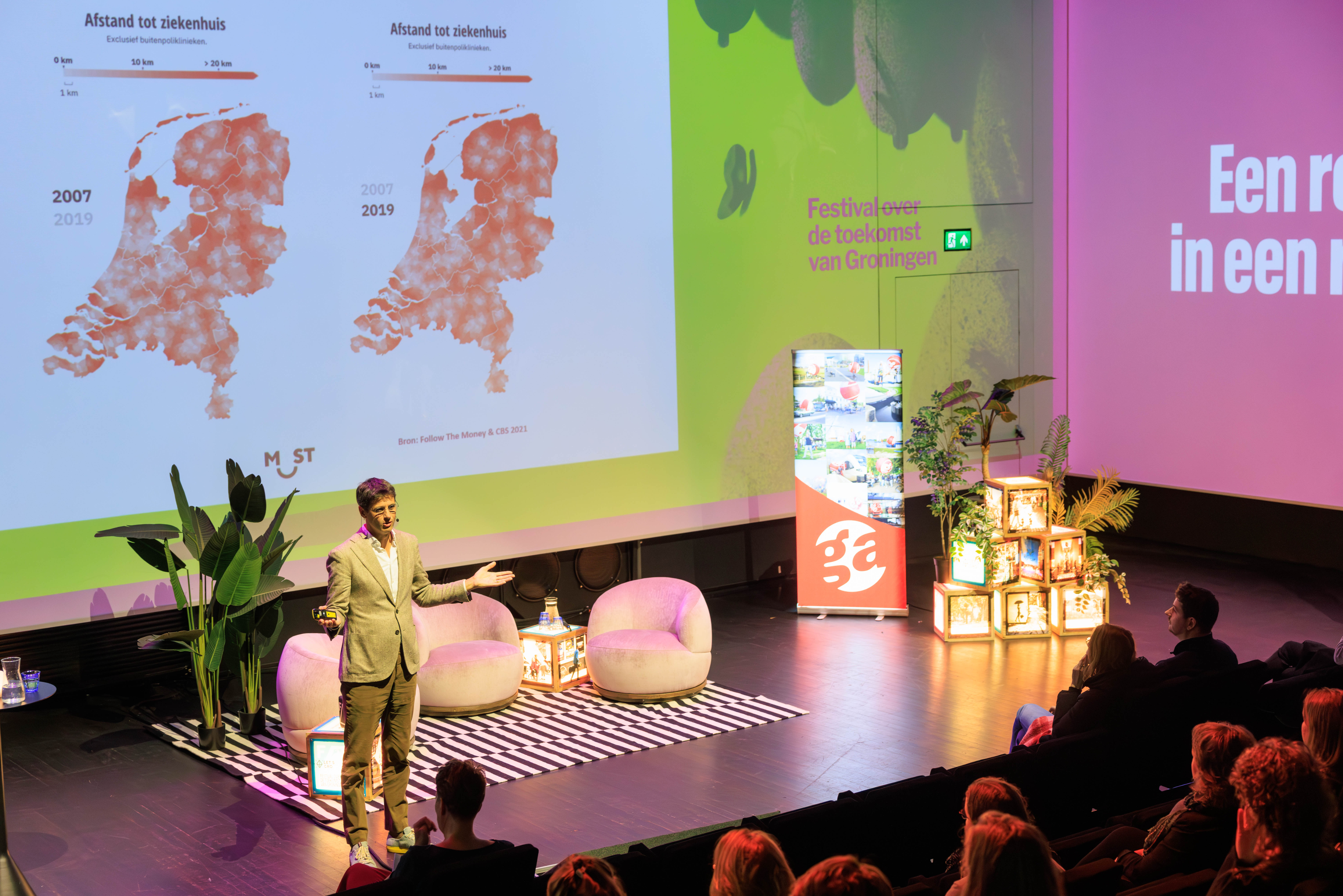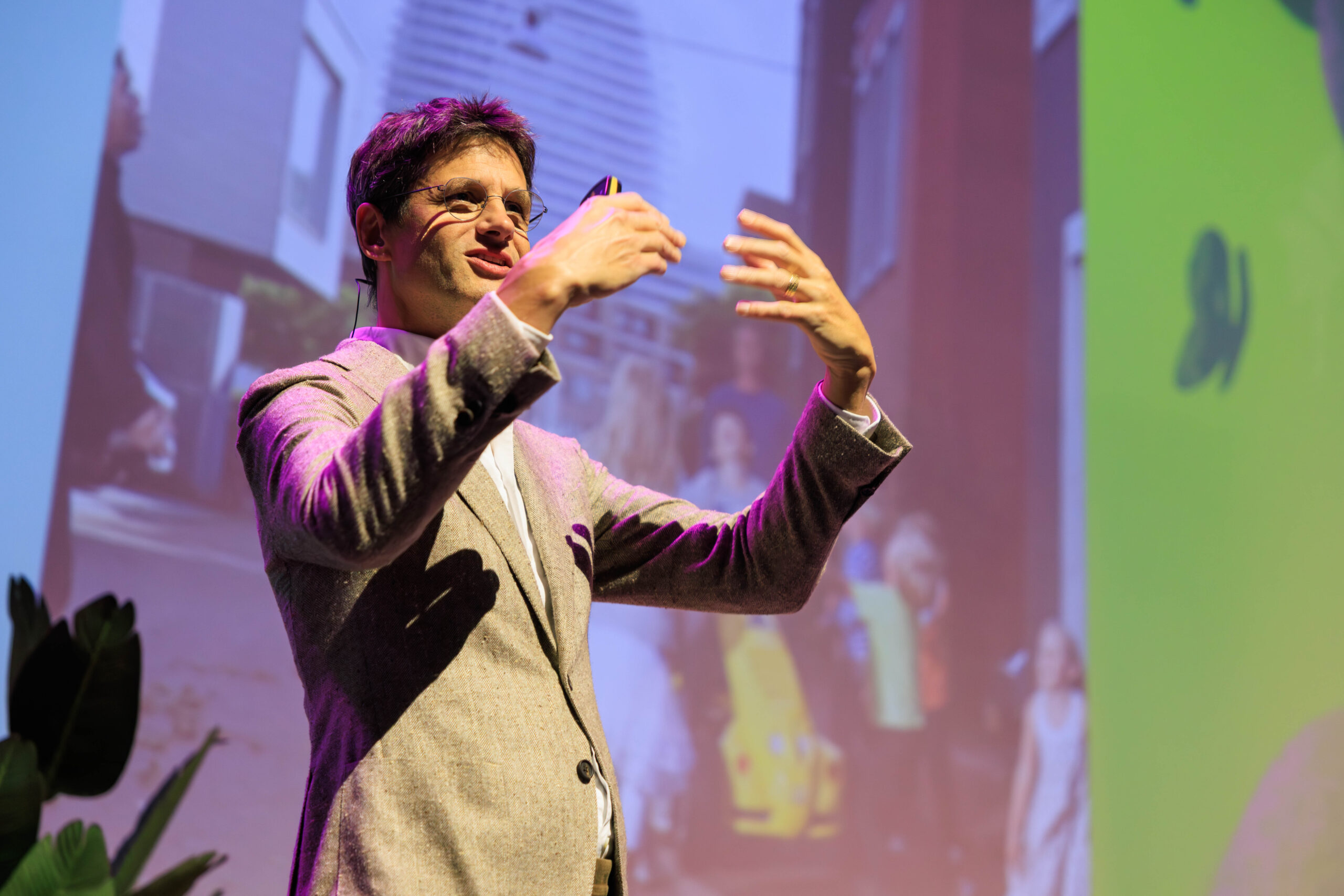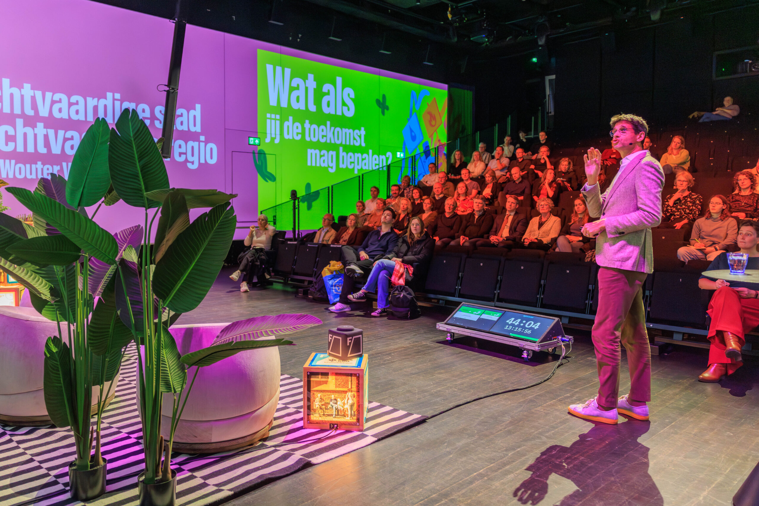 Voormalig Rijksadviseur voor de Fysieke Leefomgeving Wouter Veldhuis (MUST stedebouw) nam de aanwezigen mee in zijn visie op rechtvaardige ruimtelijke ontwikkeling. Volgens hem zijn er twee schaalniveaus die ertoe doen: de buurt (de woonomgeving van mensen) én de regio (de leefomgeving van mensen). Het zijn de plekken waar mensen elkaar ontmoeten, en waar samenwerking tussen bewoners, overheid en markt vorm krijgt.