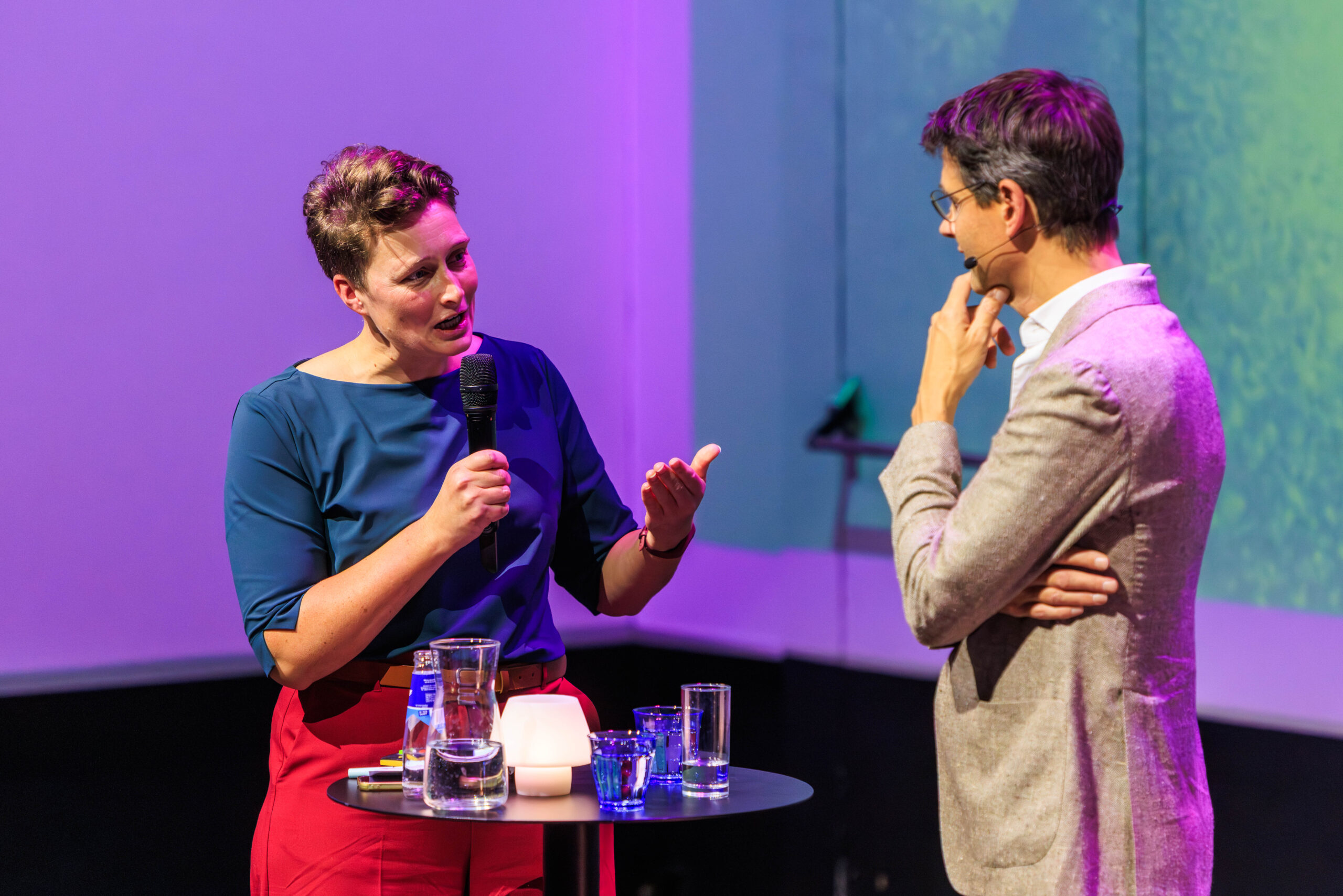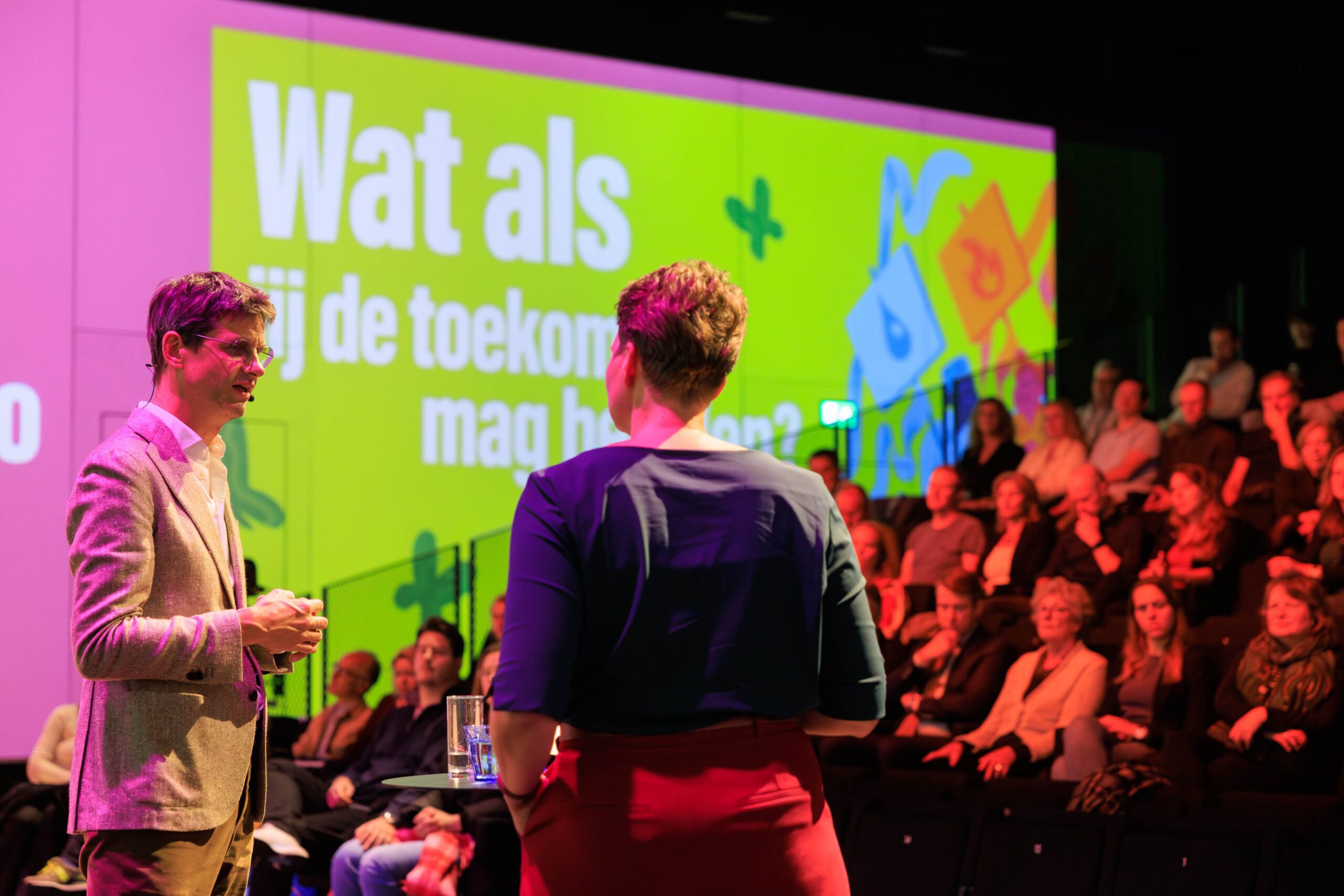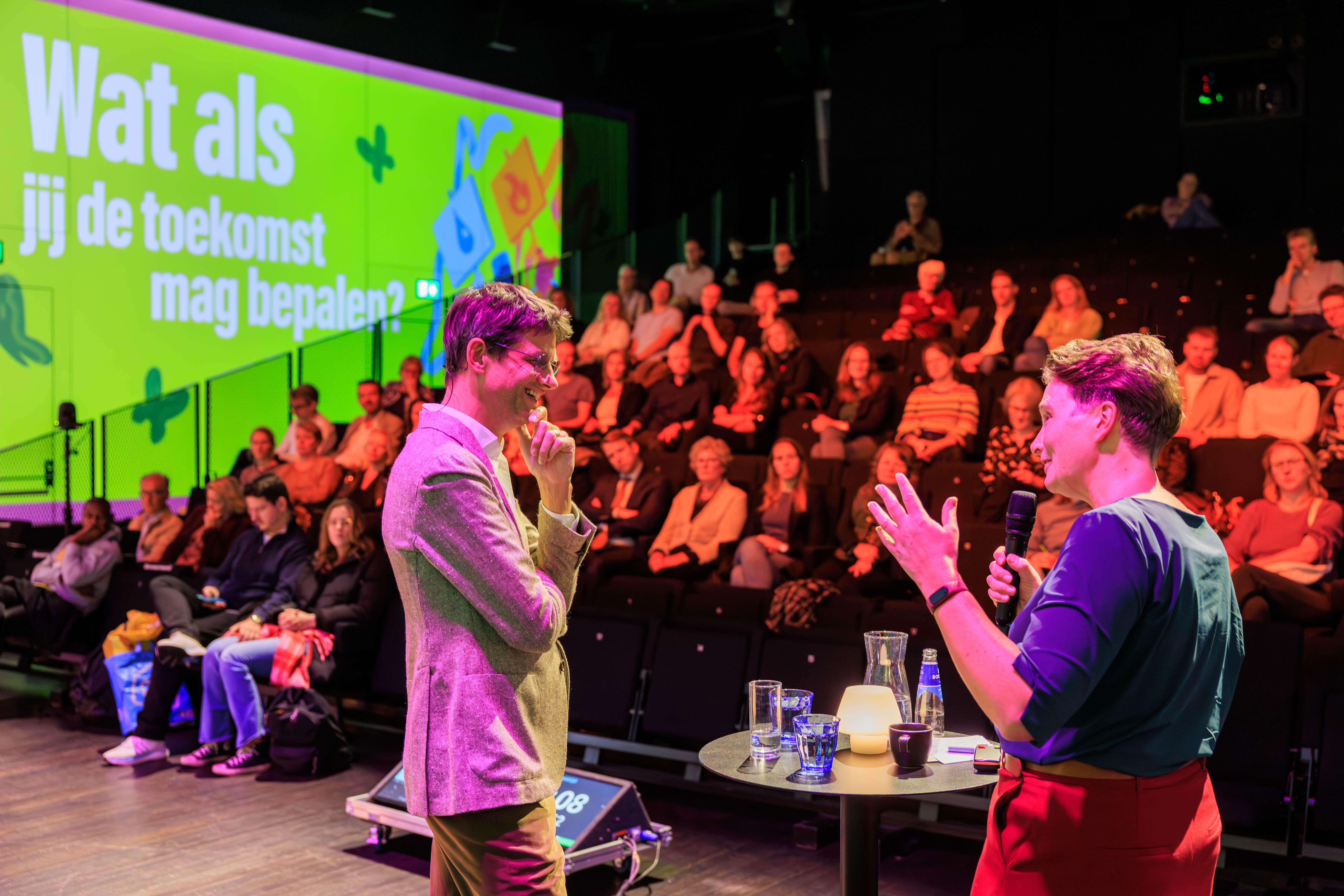 Kirsten Ipema sloot de bijeenkomst af met een gesprek tussen de spreker Wouter Veldhuis en vragen uit het publiek. Hoe kunnen gemeenten, provincie, rijk én inwoners samen werken aan een toekomst waarin welzijn, nabijheid en vertrouwen centraal staan?